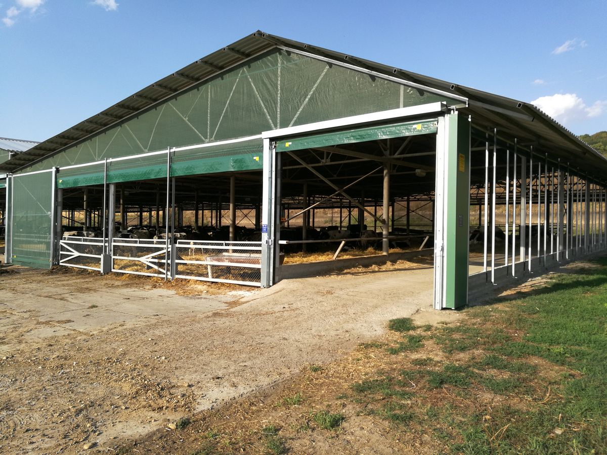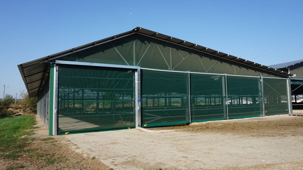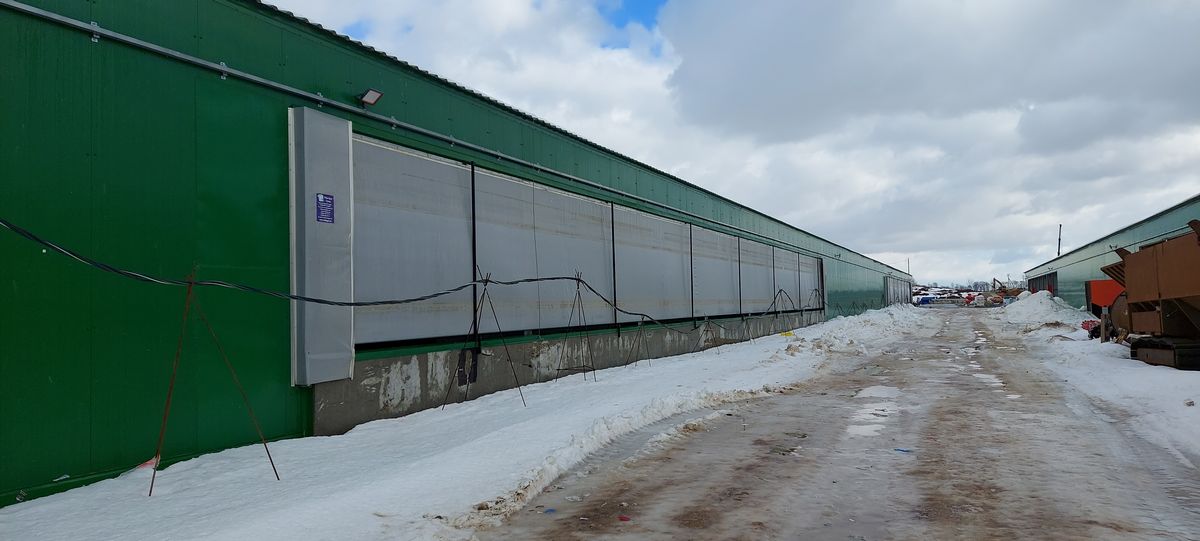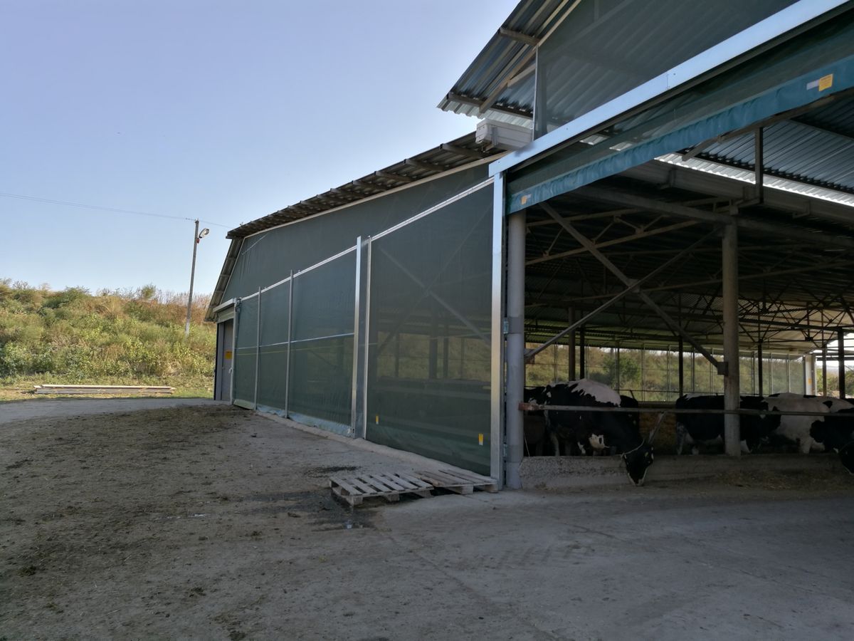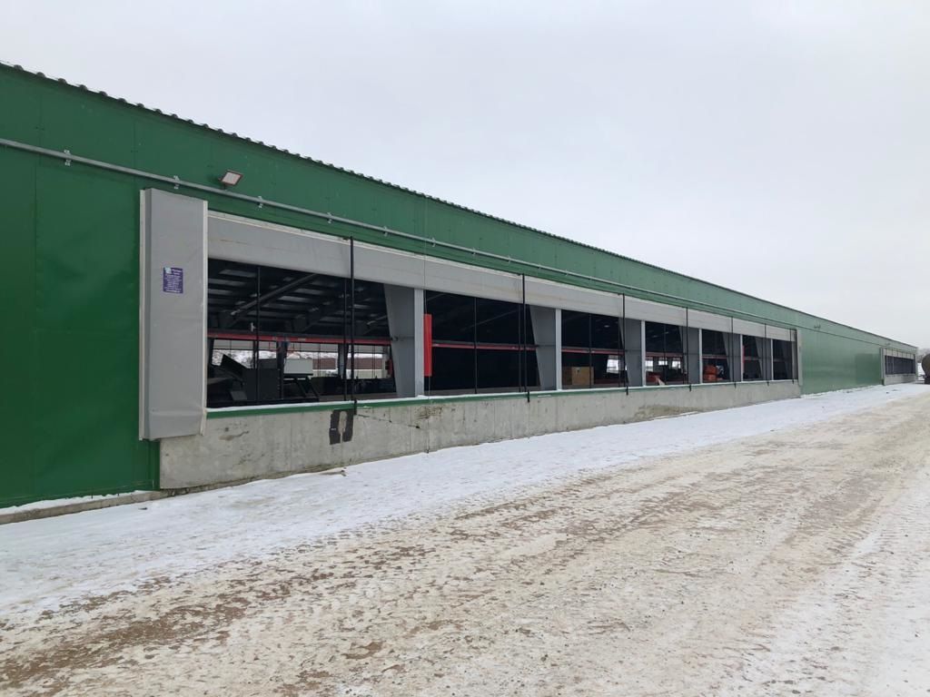 Один из первых масштабных проектов нашей компании! В результате кропотливой работы над проектом четыре уличных навеса для коров превратились в полноценный комплекс. Он был оснащен передовыми системами свето-вентиляционных штор высотой 4 м и длиной по 40 м. Подъемными воротами длиной 20-25 м и высотой 4-4,5 м. Быстрыми ролл-воротами с системой автоматики на кормовых проездах. Системами ворот различных модификаций, свето-вентиляционными панелями. На данный объект в общей сложности было поставлено и смонтировано 32 системы штор, ворот и панелей. Конструкция навесов претерпела массу изменений, прежде чем была подготовлена для монтажа. Сварены километры металла, вкручены тысячи болтов и шурупов.
